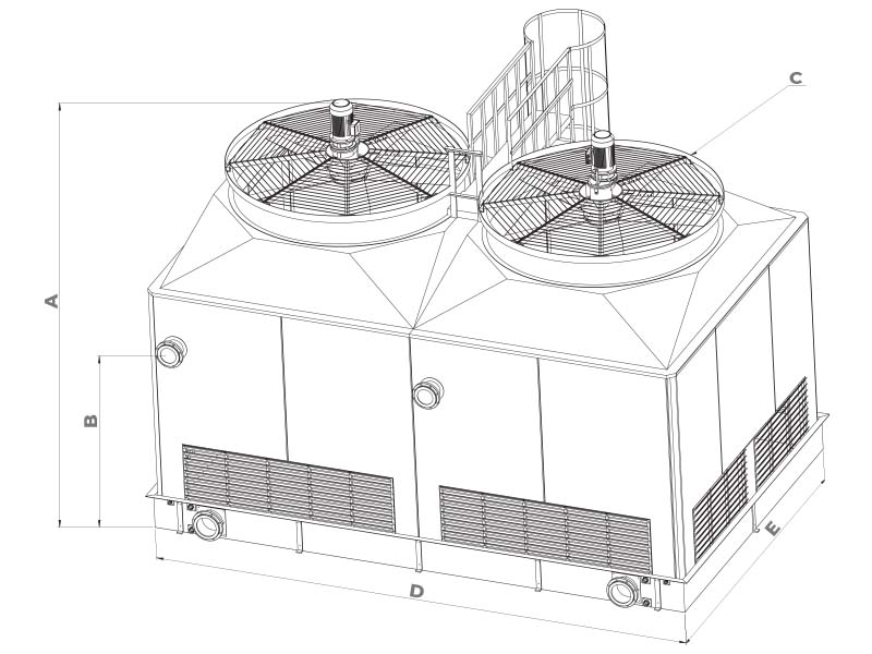 Tek hücreli soğutma kulesi tiplerinde tek motor kullanılmaktadır. Fan olarak da, radyal fana nazaran daha verimli olan aksiyal fanlar tercih edilir. Su tasarrufu, birim alana daha fazla soğutma, elektrik maliyetini düşürme gibi… Kule boyutlarına, karışıklığı istişareden sonra bilgi havuzunda toplanan bilgilerin analizi sonucunda karar verilmektedir. Gereken temel bilgiler; kapasitesi, konumu, yaş-kuru termometre deşerleri ve rakım deşerleridir.