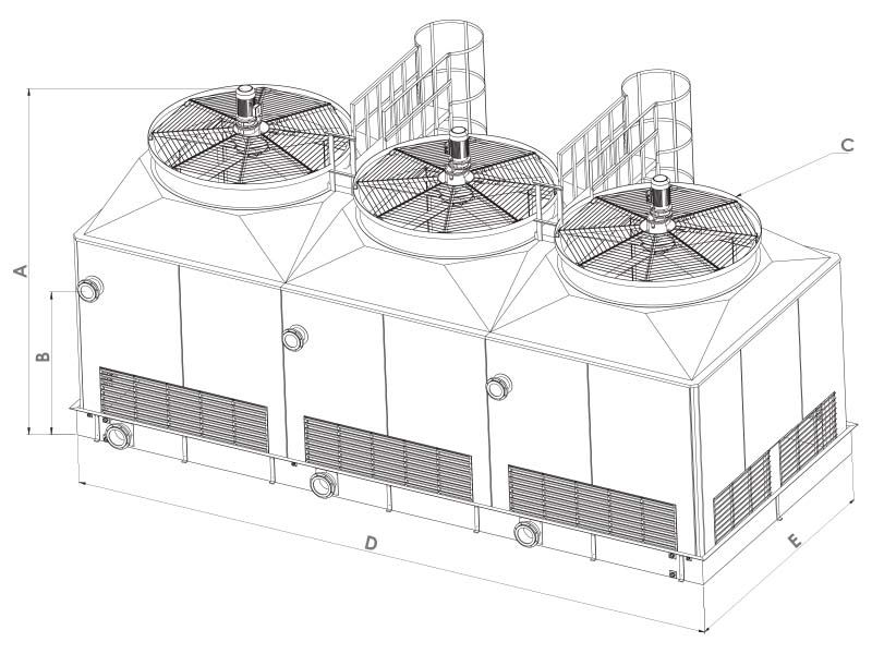 Üç farklı motor ve fan grubu etkindir. İki hücreli kulelerdeki gibi bağımsızdırlar ve tek havuza sahiptirler. İki hücreli kulelerde bakım, arıza veya revizyon esnasında %50 kapasite çalışan sistem, bu tip kule yapılarında % 67 ile çalışmasına devam edebilirler. Motor gücündeki düşüş motorun bulunabilirliğini, kulelerin üçüz olması stok maliyetine, su tasarrufuna direk yansımaktadır. Müşteri isteğine göre eni aynı kalmak koğuluyla farklı boydaki kulelerle birlikte inşa edilebilir.